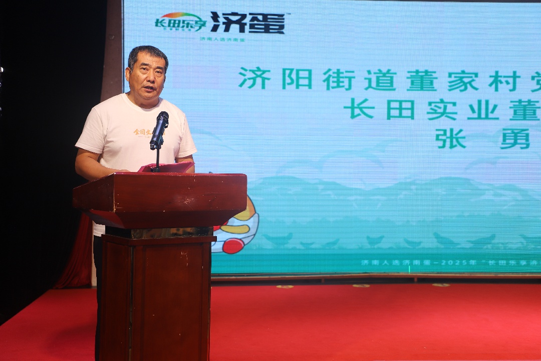 濟(jì)陽(yáng)區(qū)副區(qū)長(zhǎng)董鵬將“濟(jì)蛋”喻為品牌賦能鄉(xiāng)村振興的濟(jì)陽(yáng)樣本。濟(jì)陽(yáng)區(qū),作為省會(huì)濟(jì)南的“北大門”,近年來(lái),走出了設(shè)施農(nóng)業(yè)增效之路、畜牧集群崛起之路、品牌矩陣塑強(qiáng)之路, 連續(xù)三年進(jìn)京舉辦“好味知濟(jì)”區(qū)域公用品牌推介會(huì),品牌影響力持續(xù)擴(kuò)大,濟(jì)陽(yáng)農(nóng)產(chǎn)品正闊步從田間走向世界餐桌。這份成績(jī)單的背后,是廣大經(jīng)營(yíng)主體的實(shí)干擔(dān)當(dāng)。他禮贊長(zhǎng)田實(shí)業(yè)張勇董事長(zhǎng)帶領(lǐng)團(tuán)隊(duì)在市場(chǎng)開拓、聯(lián)農(nóng)帶農(nóng)中的創(chuàng)新貢獻(xiàn),指出“長(zhǎng)田樂(lè)享濟(jì)蛋”是其品質(zhì)追求的體現(xiàn),承載著濟(jì)陽(yáng)農(nóng)產(chǎn)品高端化與服務(wù)美好生活的期望,并邀請(qǐng)來(lái)賓共同品鑒助力品牌走進(jìn)千家萬(wàn)戶。