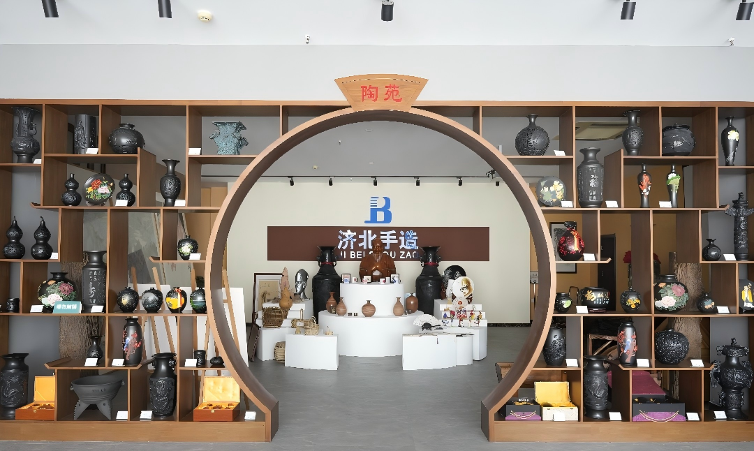 作為濟(jì)陽區(qū)非遺文化的重要展示窗口,展廳始終以傳統(tǒng)技藝類產(chǎn)品為核心支柱。升級(jí)后,黑陶的古樸厚重、老粗布的經(jīng)緯溫情、木作的匠心巧思、剪紙的靈動(dòng)鮮活、柳編的自然質(zhì)樸,以及黃河五彩陶、刻瓷、烙畫、彩塑等十余項(xiàng)代表性非遺手造產(chǎn)品依舊悉數(shù)亮相,每一件作品都承載著當(dāng)?shù)亟橙藬?shù)十年的技藝沉淀,全方位呈現(xiàn)了非遺文化的深厚底蘊(yùn)與獨(dú)特魅力,讓觀眾在參觀中直觀感受傳統(tǒng)手造的文化溫度。