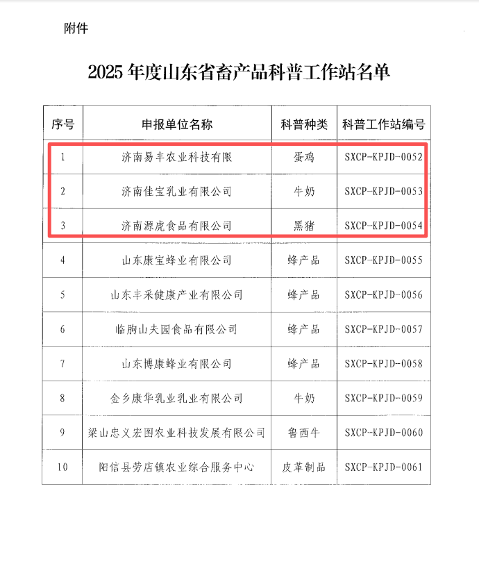 濟(jì)南易豐農(nóng)業(yè)科技有限公司成功獲評(píng)“2025年度山東省畜產(chǎn)品科普工作站”,科普種類為蛋雞領(lǐng)域,成為濟(jì)南地區(qū)聚焦蛋雞產(chǎn)業(yè)科普、助力畜產(chǎn)品質(zhì)量安全知識(shí)傳播的重要載體;